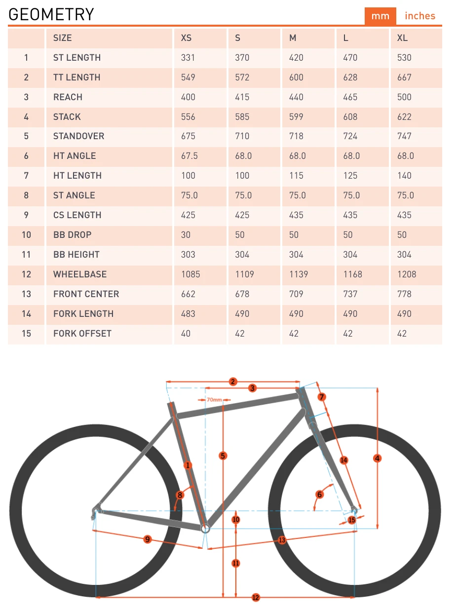 - XS (26″), S (27.5″), M (27.5″), L (29″), XL (29″)